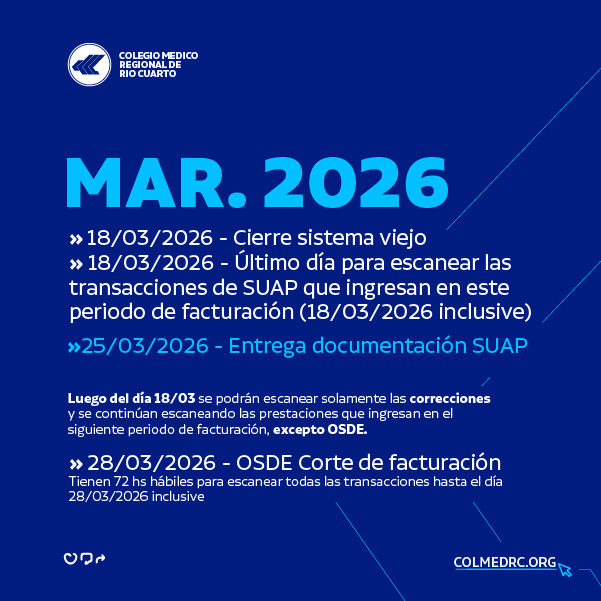 Marzo 2026: fechas importantes para facturación y documentación SUAP Compartimos el cronograma de marzo 2026 con los principales vencimientos y fechas clave vinculadas al sistema SUAP, escaneo de transacciones y