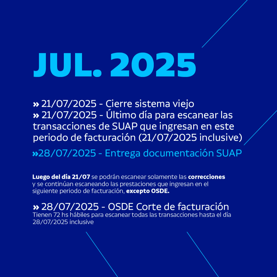 🩺 Informamos a los profesionales que durante julio 2025 deben tener en cuenta las siguientes fechas importantes relacionadas con la facturación del sistema SUAP: 🔹 21/07/2025• Cierre del sistema viejo• […]